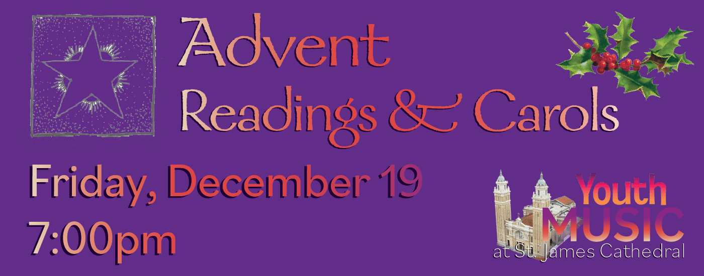 O come all ye faithful! Advent Readings & Carols features all of our Youth Music ensembles singing songs of Advent anticipation and Christmas joy! Youth readers offer traditional readings from Holy Scripture heralding Christ’s birth, alternating with Fratres Young Men’s Ensemble, Jubilate! Young Women’s Ensemble, Schola Cantorum, and Seraphim Choir filling the Cathedral with a joyous sound. The congregation joins in singing traditional carols in the… ...