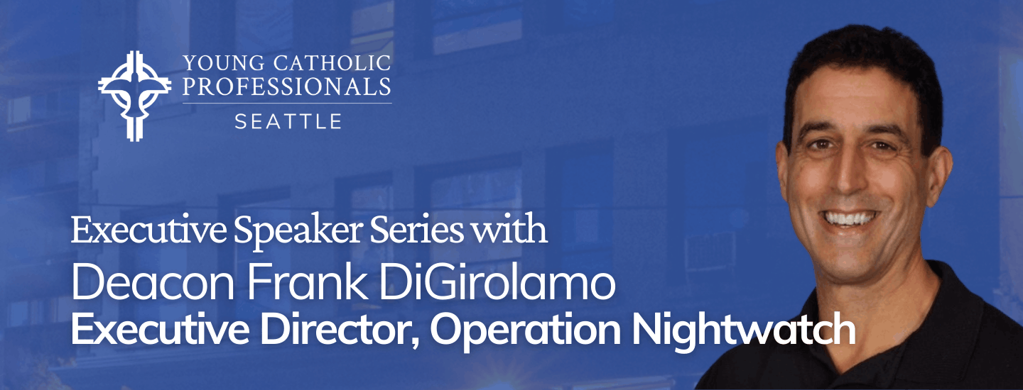 Deacon Frank DiGirolamo will speak about his early career journey (Disney and Starbucks corporate), his re-engagement with faith, the Diaconate, and his current full-time job ministering on the extreme margins of Seattle’s unhoused community.